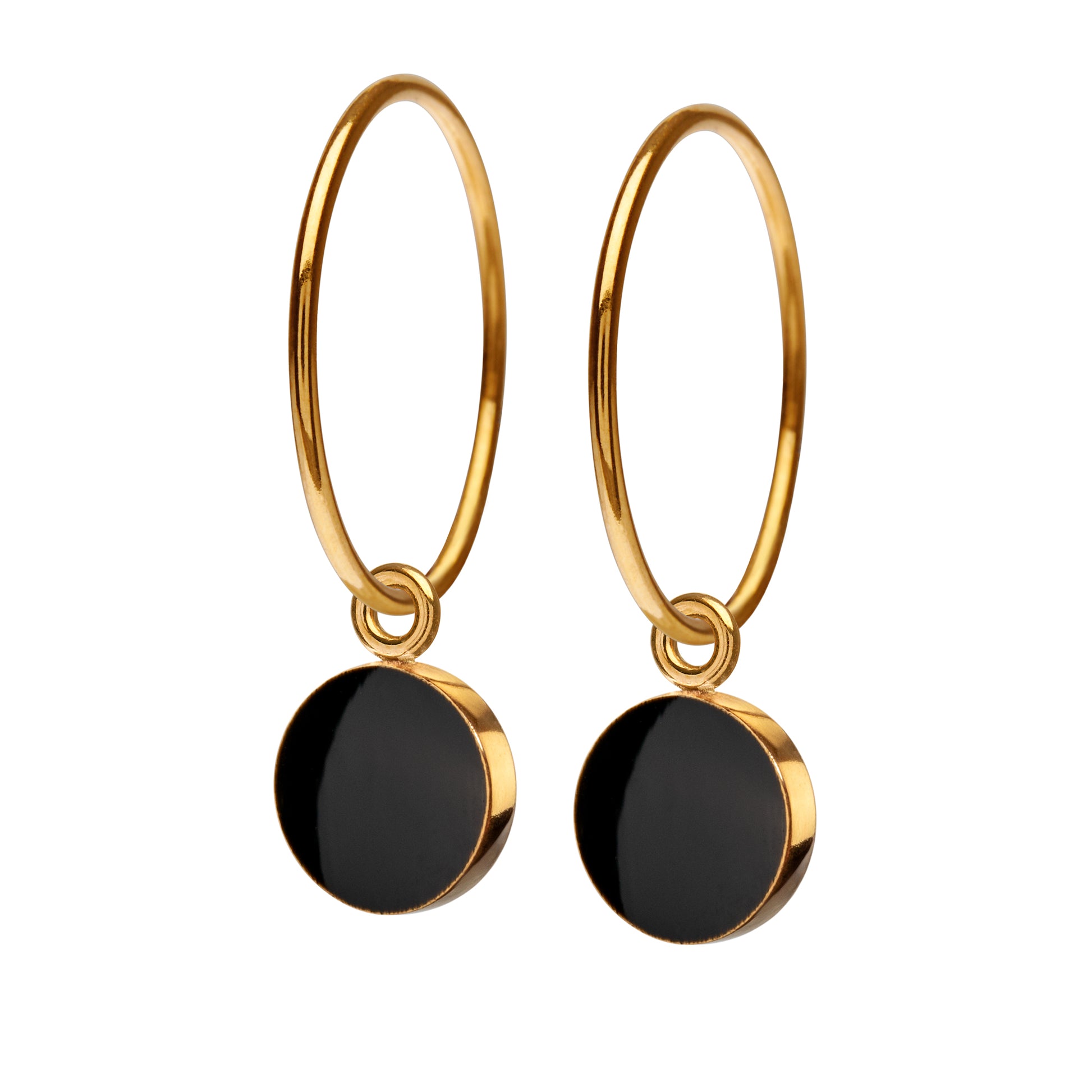 Fine Sign creoler øreringe med emaljelak i dyb sort. Stilren, enkel og iøjnefaldende.
