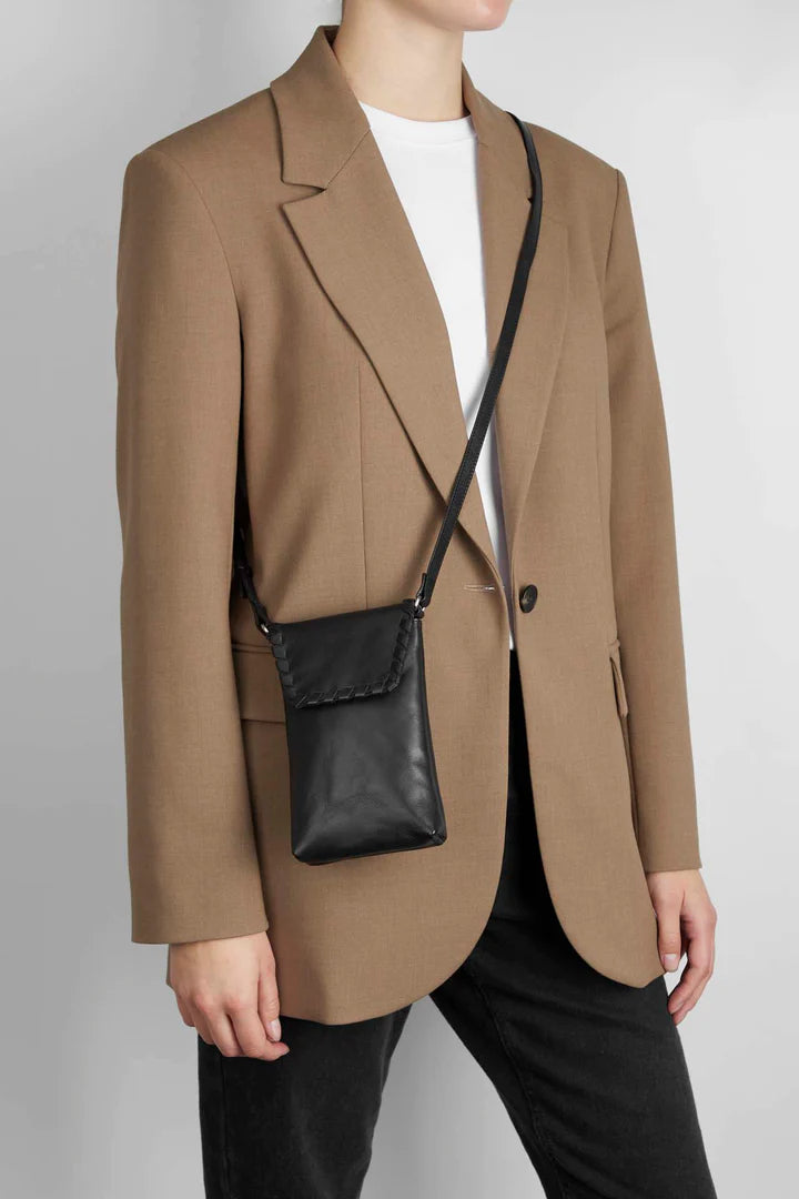 LuccaMBG Handytasche mit Riemen. Whipstitch-Modell. Schwarz. Leder. Markberg