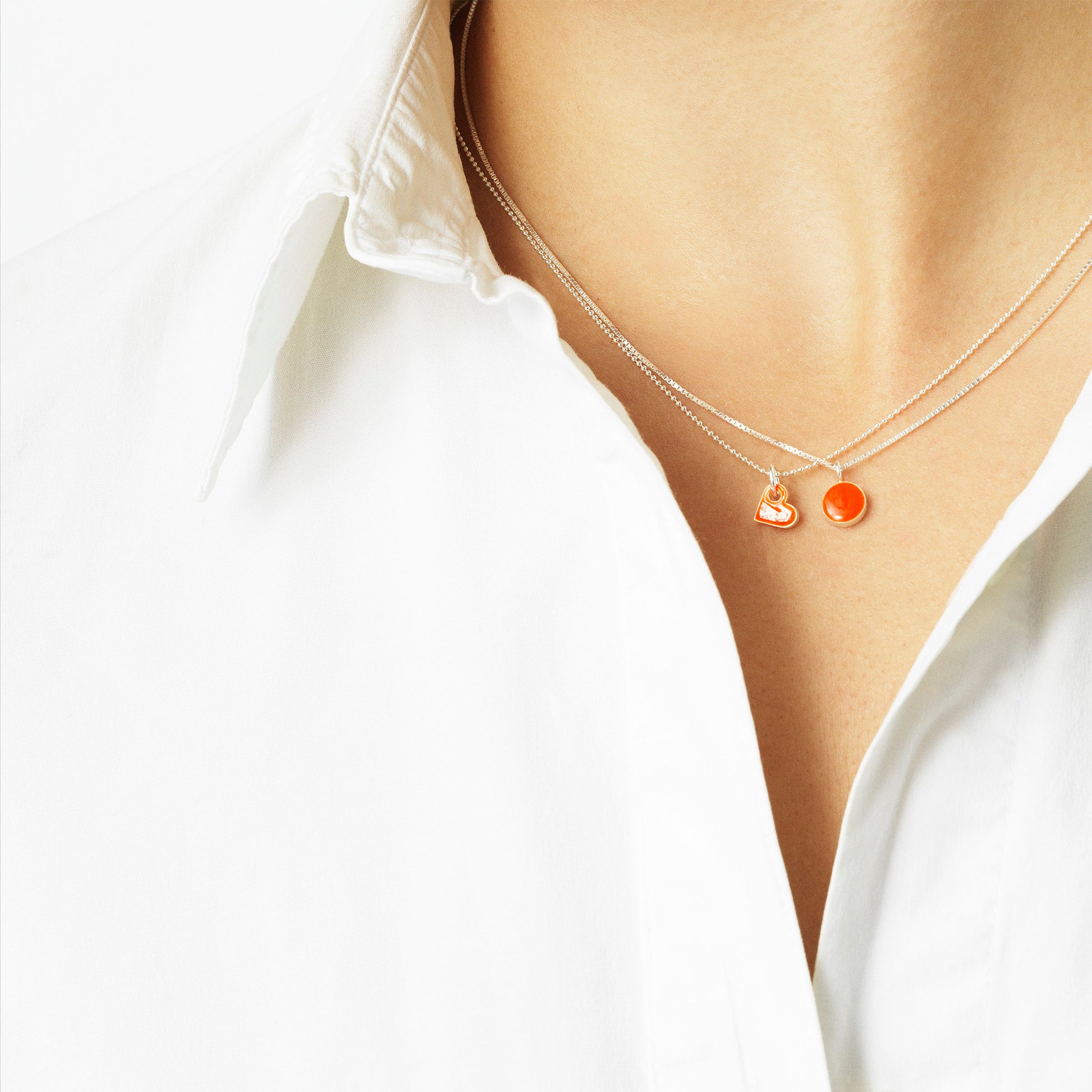 Sign necklace with pendant. Neon orange. Sterling silver. Scherning Copenhagen